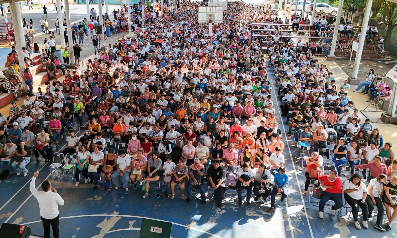 Miles de becarias y becarios de educación media superior, así como madres y padres de familia, abarrotaron hoy, 10 de diciembre, la Unidad Deportiva Jaime «Tubo» Gómez en Colima para la entrega de las tarjetas del programa Beca “Benito Juárez”.