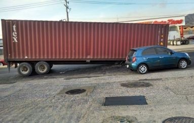 Manzanillo, Col.- La circulación vehicular se vio afectada sobre el libramiento de Tapeixtles, en dirección a la autopista, cuanto el contenedor que era jalado por un tractocamión se desprendió.
