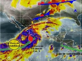 Huracán Patricia tocó tierra a las 18:00 horas en las costas...