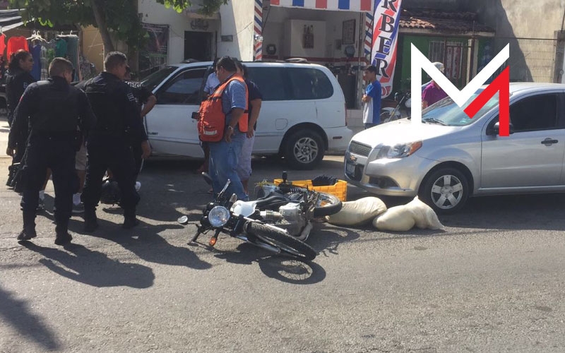 Un Motociclista repartidor de masa para tortillas fue impactado por alcance por un sedán gris conducido por una mujer.